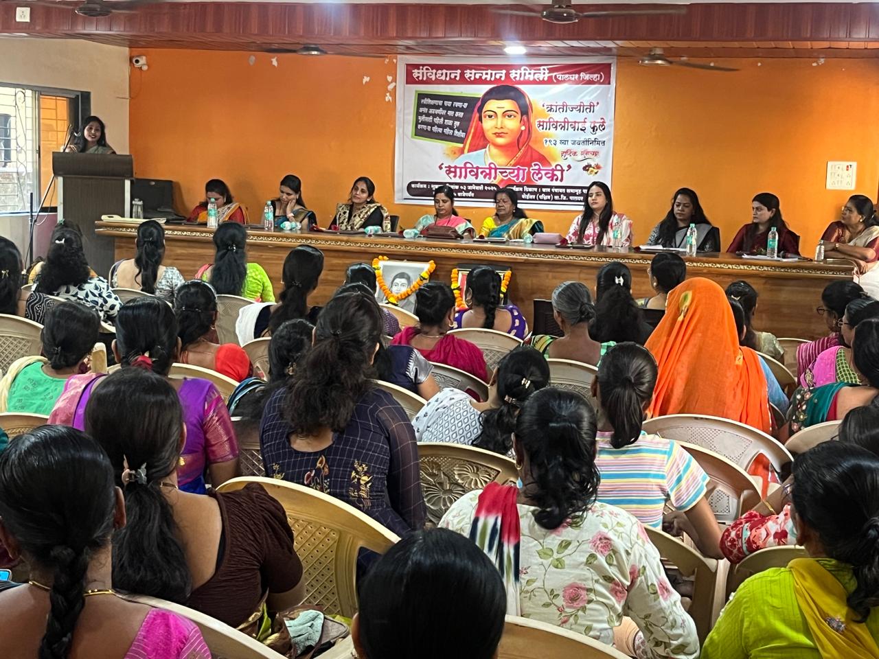 कार्यक्रमाचे प्रमुख वक्ता प्रा.डॉ.प्रियदर्शनी ढोले, सोनोपंत दांडेकर कॉलेज, पालघर यांनी आपल्या भाषणात सावित्रीबाई फुले यांचे जीवन कार्य व त्यांची चळवळ समजावून सांगितली. महिलावर त्यांचे काय उपकार आहेत व महिलांनी काय केले पाहिजे,याविषयी जाणीव करून दिली.तसेच भारतीय संविधानाने महिलांना काय दिले हिंदू कोडबील,महिला आरक्षण,महिलांना संविधानिक अधिकार,काय आहेत,याविषयी प्रबोधन केले. सदर कार्यकमामध्ये महिला मोठ्या संख्येने सहभागी झाल्या होत्या.कार्यक्रमाला यशस्वी करण्याकरिता कल्पना बोरसे,रुबीना शेख,प्रिया मोरे,शुभेच्छा चिकणे यांनी खूप मेहनत घेतली.