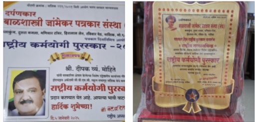 दिपक मोहिते याना राष्ट्रीय कर्मयोगी पुरस्कार – २०२५ जाहीर,