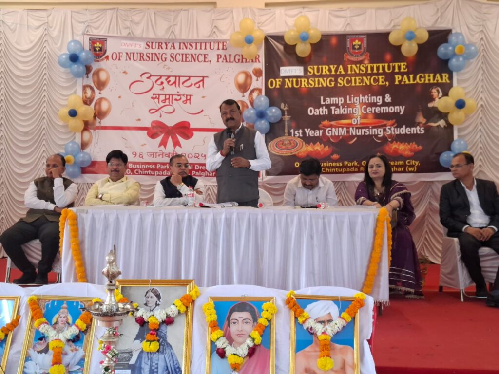 नर्सिंग स्टाफ रुग्णाच्या अत्यंत जवळची व्यक्ती असते, त्यामुळे नर्सिंग क्षेत्राचे काम हे खूप जबाबदारीचे आहॆ.सध्या जगभरात प्रत्येक रुग्णालयात नर्सिंग स्टाफचा तुटवडा भासत आहे,यासाठी देवमोगरा फाउंडेशन ट्रस्ट संचलित सूर्या इन्स्टिट्यूट ऑफ नर्सिंग सायन्स पालघर,यांच्याद्वारे घडणाऱ्या सर्व विद्यार्थ्यांना उत्तम व गुणवत्तापूर्ण शिक्षण मिळवून देशात व परदेशात भासत असलेल्या नर्सेसच्या तुटवड्यावर परिणामकारक ठरतील व नुसते संस्था पालघर किंवा राज्याचे नव्हे तर संपूर्ण भारताचे नाव जगभरात उज्वल करतील,असे प्रतिपादन आ.राजेंद्र गावित यांनी याप्रसंगी केले.