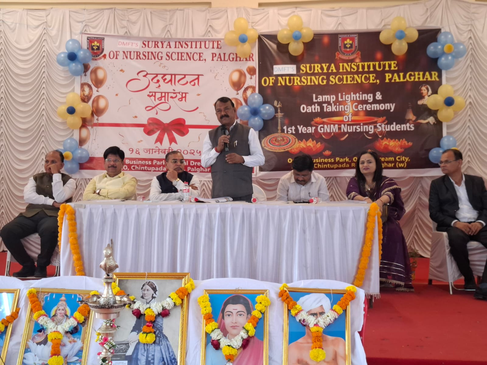 देवमोगरा फाउंडेशन ट्रस्ट संचलित सूर्या इन्स्टिट्यूट ऑफ नर्सिंग सायन्स,पालघर यांच्या प्रथम वर्षाच्या जी.एन.एम.नर्सिंग विद्यार्थ्यांच्या दीपप्रज्वलन व शपथविधी सोहळा मोठ्या उत्साहात पार पडला. कार्यक्रमाच्या प्रमुख पाहुणे म्हणून आ.राजेंद्र गावित उपस्थित होते.यावेळी त्यांनी आपल्या भाषणात नर्सिंग व्यवसायाचे महत्त्व विशद केले.