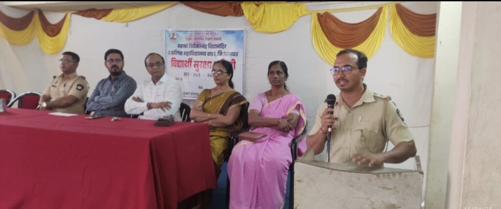 वाड्यातील स्वामी विवेकानंद विद्यामंदिर व कनिष्ठ महाविद्यालय येथे विद्यार्थी सुरक्षा समिती व शालेय परिवहन समिती यांच्या संयुक्त जनजागृतीचे आयोजन करण्यात आले होते.