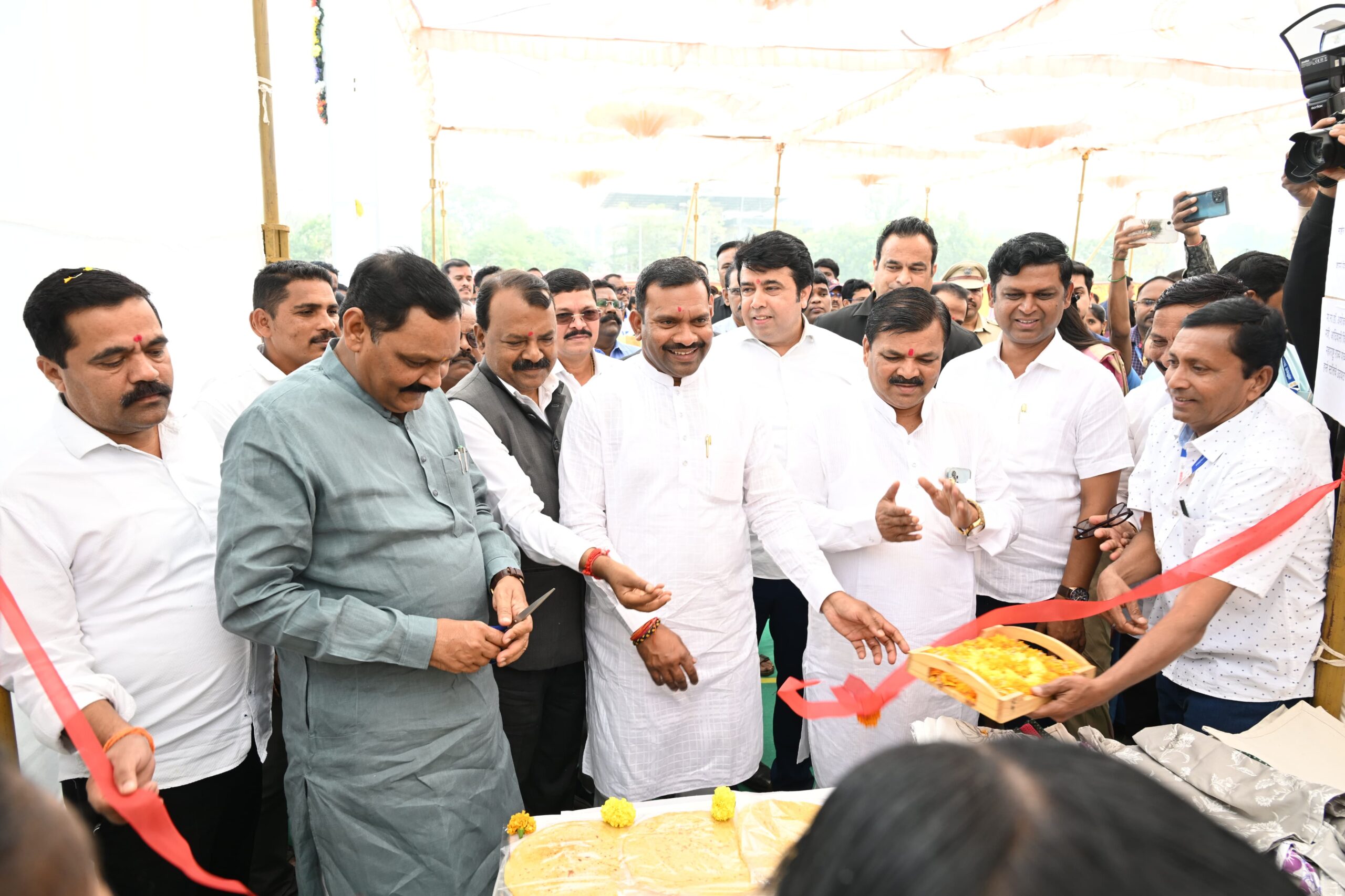 या वेळी मंत्री डॉ.अशोक उईके यांच्या हस्ते आदिवासी विकास विभागाअंतर्गत विविध योजनेच्या लाभार्थ्यांना प्रातिनिधीक स्वरूपात धनादेशाचे वाटप करण्यात आले .