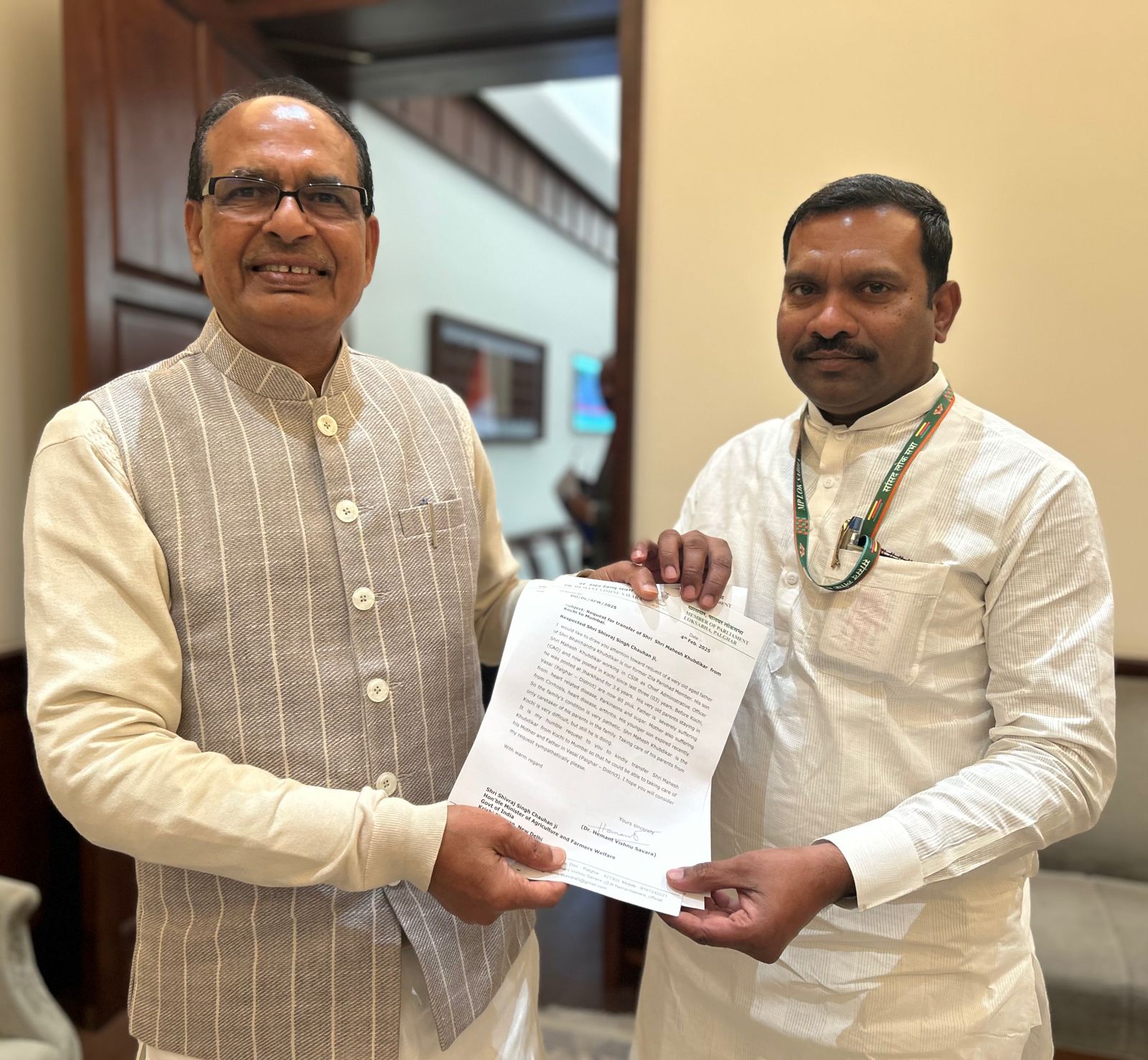 आज खा. सवरा यांनी केंद्रीय ग्रामीण विकास कृषी व शेतकरी कल्याणमंत्री शिवराज चौहान यांची भेट घेऊन आपल्या मागण्याचे निवेदन त्यांना दिले.