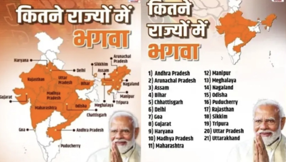 २०१८ मध्ये देशाच्या राजकीय नकाशावर भाजप आघाडीवर होती.त्यावेळी २० राज्यात भाजपाचे राज्य होते.यामध्ये पूर्वोंत्तर येथील सर्व ७ राज्यांशिवाय उत्तर प्रदेश, उत्तराखंड,हिमाचल,गुजरात, राजस्थान,मध्य प्रदेश, छत्तीसगड, हरियाणा आणि महाराष्ट्र या राज्यांचा समावेश होता.त्यानंतर अनेक राज्यात भाजपला पराभवाचे धक्के बसले.सात वर्षांनंतर आता भाजपाने आपलाच रेकॉर्ड तोडत २१ राज्यात सत्ता मिळवली आहे.हरियाणा,महाराष्ट्र व आता दिल्ली,असे सलग तीन विजय मिळवल्यामुळे भाजपचा आत्मविश्वास दुणावला आहॆ.आगामी काळात होऊ घातलेल्या बिहार आणि प.बंगाल या दोन राज्यावर त्यांची घारीसारखी नजर आहॆ.प.बंगालच्या मुख्यमंत्री ममता बॅनर्जी यांची सत्ता उखडून टाकण्यासाठी मोदी व शहा,आता जोमाने कामाला लागतील,असा अंदाज व्यक्त करण्यात येत आहॆ.