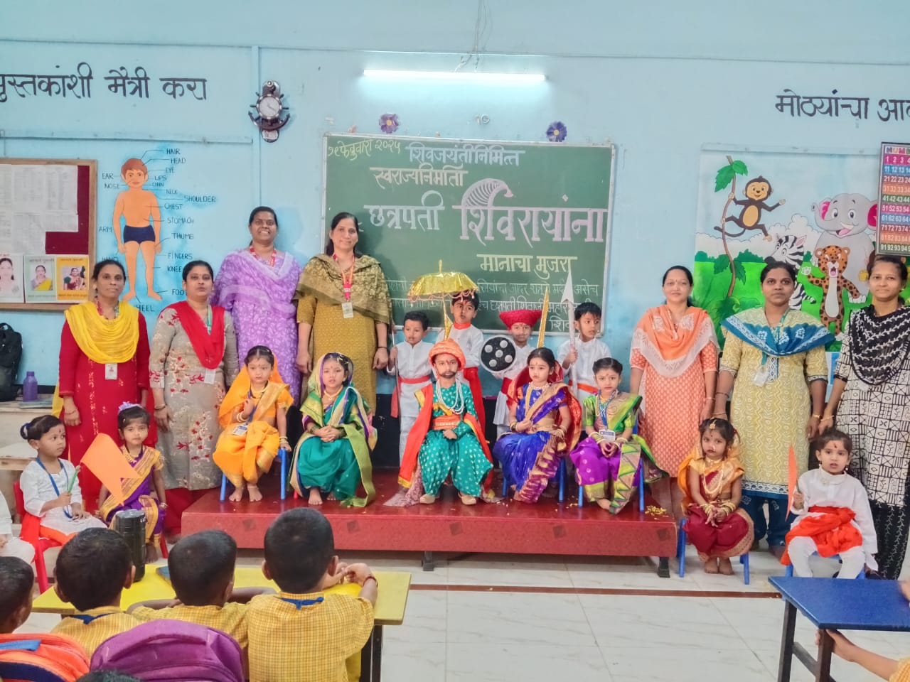 मुख्याध्यापिका श्रीमती भक्ती वर्तक यांच्या मार्गदर्शनाखाली छत्रपती शिवाजी महाराजांच्या प्रतिमेची पूजा करून महाराजांचा आगमन सोहळा पार पडला.जय भवानी,जय शिवाजी शिवगर्जनेच्या जयघोषात परिसर दुमदुमला.