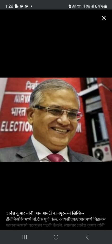 भारताचे २६ वे मुख्य केंद्रीय निवडणूक आयुक्त पदी नव्याने नियुक्त झालेले हे १९८८ च्या बॅचचे केरळ केडरचे अधिकारी आहेत.राज्य व केंद्रीय स्तरावर त्यांनी अनेक पदावर काम केले असून केंद्रीय गृहमंत्रालयात काम करताना त्यांनी अनेक महत्वाच्या विषयी त्यांनी प्रभावी भूमिका पार पाडली होती.३७० कलम रद्द केल्याचा निर्णय घेतल्यानंतर त्याची अंमलबजावणी करण्यामध्ये ज्ञानेश कुमार यांचे फार मोठे योगदान होते.त्यांची प्रशासकीय वाटचाल लक्षात घेऊन केंद्र सरकारने त्यांची राममंदिर ट्रस्टच्या सदस्यपदी निवड केली होती.असे हे ज्ञानेशकुमार,यांनी तत्कालीन निवडणूक आयुक्त राजीवकुमार यांच्याकडून नुकतीच सूत्रे हाती घेतली.