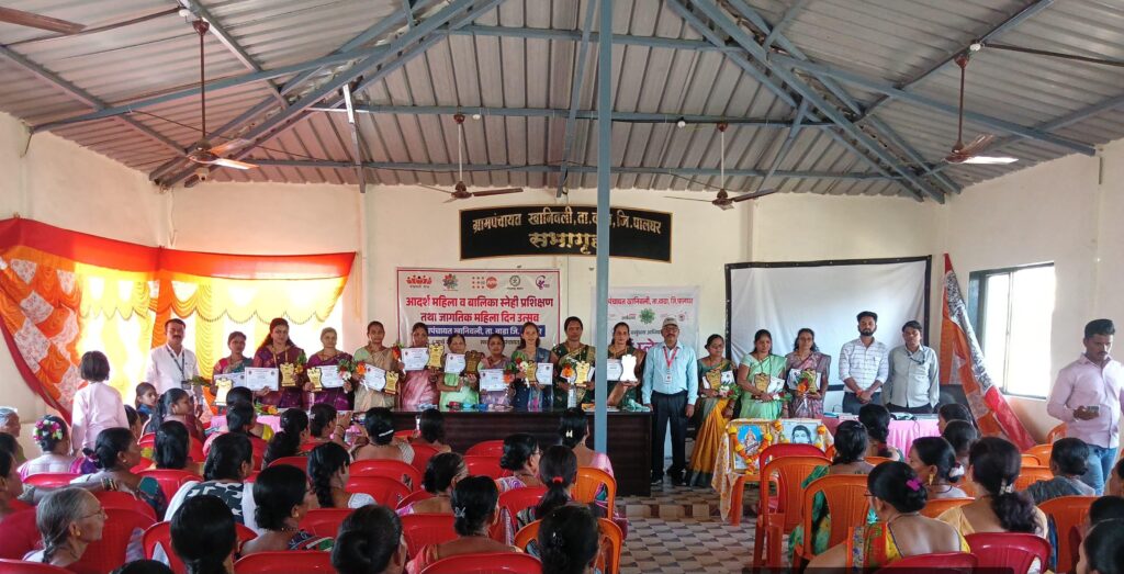 आज महिला दिनाच्या निमित्ताने ग्रामपंचायतीतर्फे अनेक कार्यक्रम आयोजित करण्यात आले होते.यामध्ये गावातील महिला ग्रामपंचायत सदस्य,अंगणवाडी सेविका,आशा सेविका,महिला डॉक्टर,स्टाफ नर्स,बचत गटाच्या प्रभाग संघाच्या अध्यक्षा,सचिव,सीआरपी यांचा सन्मान करण्यात आला. तसेच उपस्थित महिलांना महिला स्नेही गावाची संकल्पना आणि प्रशिक्षण देण्यात आले.यावेळी प्रेरणा पोटींदा,सारिका पाटील,निकिता वाघ या ग्रामपंचायत सदस्य,सलोनी पाटील,सुविधा पाटील,सुलभा पाटील अंगणवाडी सेविका तर विशाखा पाटील,साक्षी पवार या आशा सेविका,तसेच ज्योत्स्ना गोतारने,कामिनी पष्टे,रुत्ता पाटील स्टाफ नर्स,पालसई प्रभाग संघाच्या अध्यक्षा तृषा पष्टे,सचिव संध्या पाटील,स्वाती पाटील सीआरपी,स्नेहा भरत पाटील महाराष्ट्र पोलिस यांचा सन्मान चिन्ह देऊन सत्कार करण्यात आला.या कार्यक्रमासाठी यशदाच्या माध्यमातून सूर्यकांत गवले सल्लागार एनआयआरडी हैद्राबाद यांनी प्रशिक्षण दिले.यावेळी श्रमिक सहाय्यता एवं संदर्भ केंद्राच्या समन्वयक रुपाली पवार,पंचायत समिती आरजीएसए विभागाचे लहारे भाऊसाहेब व वाडेकर भाऊसाहेब उपस्थित होते.कार्यक्रमाचे सूत्र संचालन ग्रामपंचायत अधिकारी पंकज चौधरी यांनी केले तर प्रस्तावना व आभार प्रदर्शन सरपंच भरत हजारे यांनी केले.