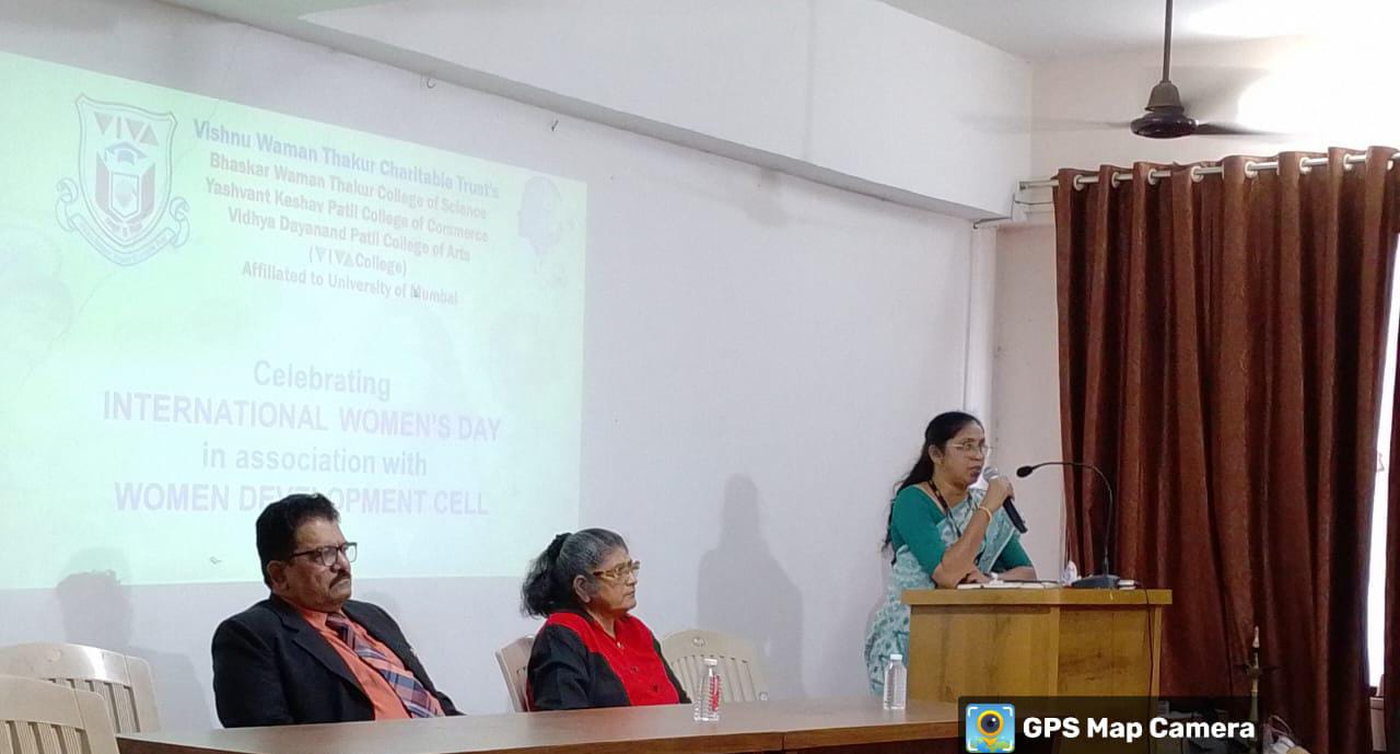 जागतिक महिला दिनाचे औचित्य साधून विवा महाविद्यालयात महिला सक्षमीकरण कक्ष आणि आयक्यूएसी यांच्या संयुक्त विद्यमाने “अॅक्युप्रेशर अँड अॅक्यूपंक्चर” या विषयावर विशेष व्याख्यान आयोजित करण्यात आले होते. या कार्यक्रमाला प्रमुख पाहुणे म्हणून डॉ.शैला सावंत, विवा महाविद्यालयाचे प्राचार्य डॉ. वी.श.अडिगल,उपप्राचार्या डॉ. प्राजक्ता परांजपे आणि उपप्राचार्या डॉ.दीपा वर्मा, महिला सक्षमीकरण कक्षाच्या प्रमुख प्राक्तना कोरे उपस्थित होते.