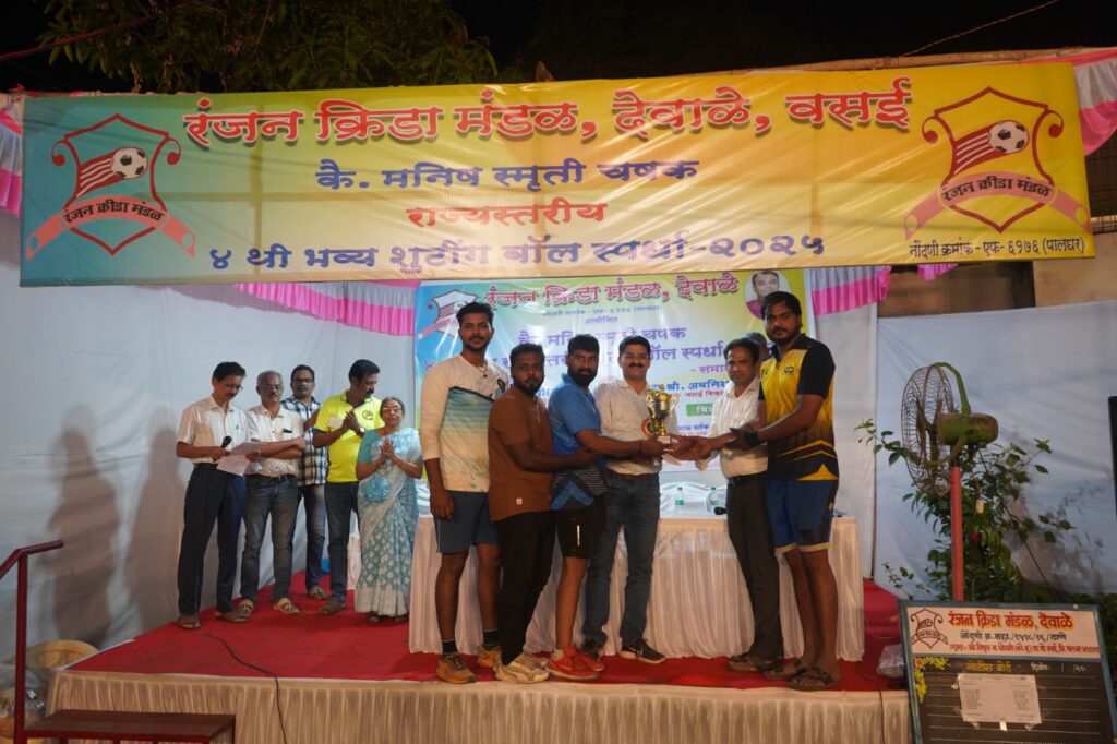 वसईतील रंजन क्रीडा मंडळ, देवाळेतर्फे ८ मार्च रोजी चौथी कै.मनिष वर्तक स्मृती चषक भव्य राज्यस्तरीय शूटिंग बॉल स्पर्धा पार पडली.
