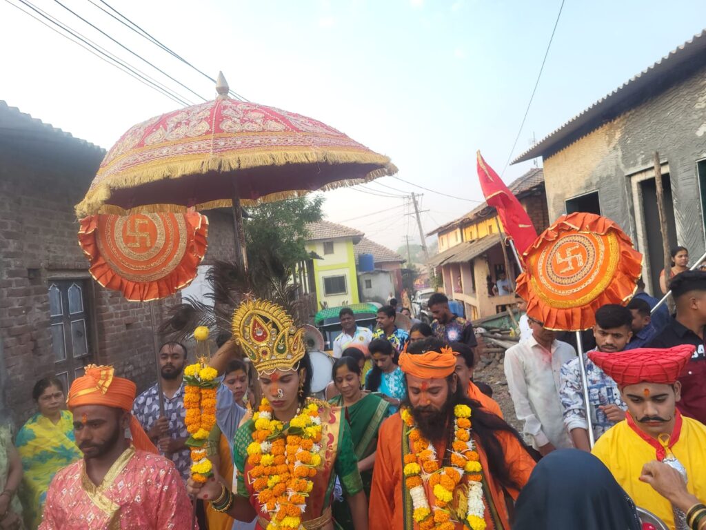 आज सकाळी ७.०० वाजल्यापासून दुपारी एक वाजेपर्यंत ग्रामदेवतेची सोंगे काढण्यात आली होती.