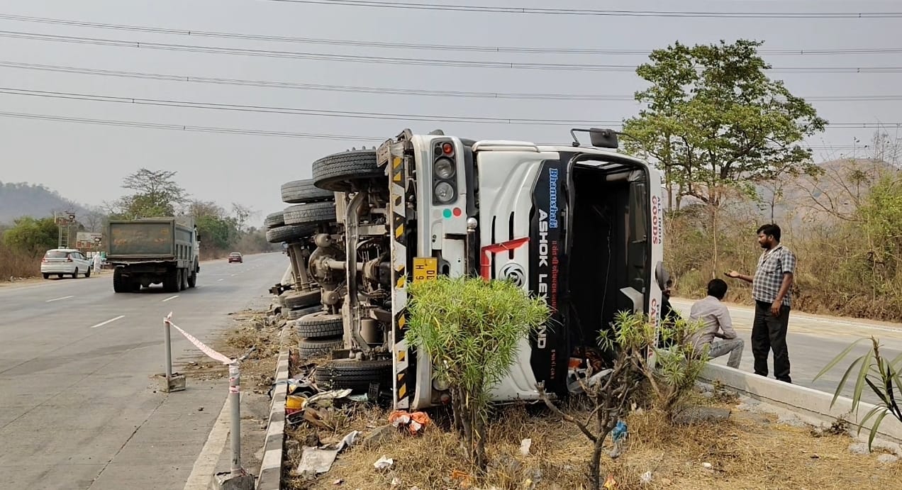 अपघातग्रस्त कंटेनर गाडी ही गुजरातहून मुंबईच्या दिशेने येत होती, चारोटी येथे अचानकपणे हा अपघात घडला महामार्ग वाहतूक नियंत्रण पोलिस चारोटी यांच्या सहकार्याने अपघातग्रस्त वाहन हटवण्यात आले .दरम्यान यामुळे महामार्गावरील वाहतूक काही काळ विस्कळीत झाली होती.