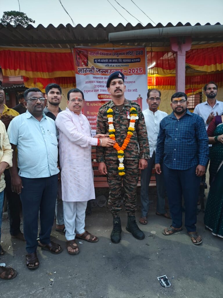 नंदन जाधव यांचा कृतज्ञता सन्मान सोहोळा हनुमान जयंतीच्या दिवशी आयोजित करण्यात आला होता. सैन्यदलातील सेवेबद्दल ग्रामस्थांच्यावतीने नंदन जाधव यांना कृतज्ञता सन्मानपत्र प्रदान करण्यात आले.यावेळी ग्रामस्थ मोठ्या संख्येने उपस्थित होते. राष्ट्रवादी ( अजित पवार ) गटाचे तालुकाध्यक्ष जयेश शेलार, गोऱ्हे उपसरपंच व तेली समाज युवक अध्यक्ष अनिल खिलारे,मिठाराम बोंद्रे,ग्रामस्थ धनेश पाटील,रमेश पाटील,यांनी मनोगत व्यक्त केले तर कार्यक्रमाचे सूत्रसंचालन रोहिदास कासार यांनी केले.