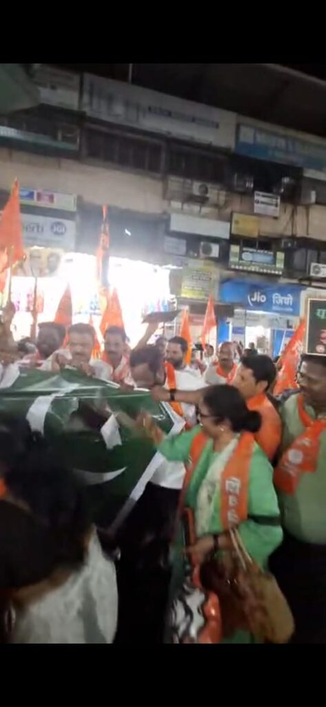 पाकिस्तानचा झेंडा फाडुन व जोडे मारून विरार शिवसेनेने केला निषेध,