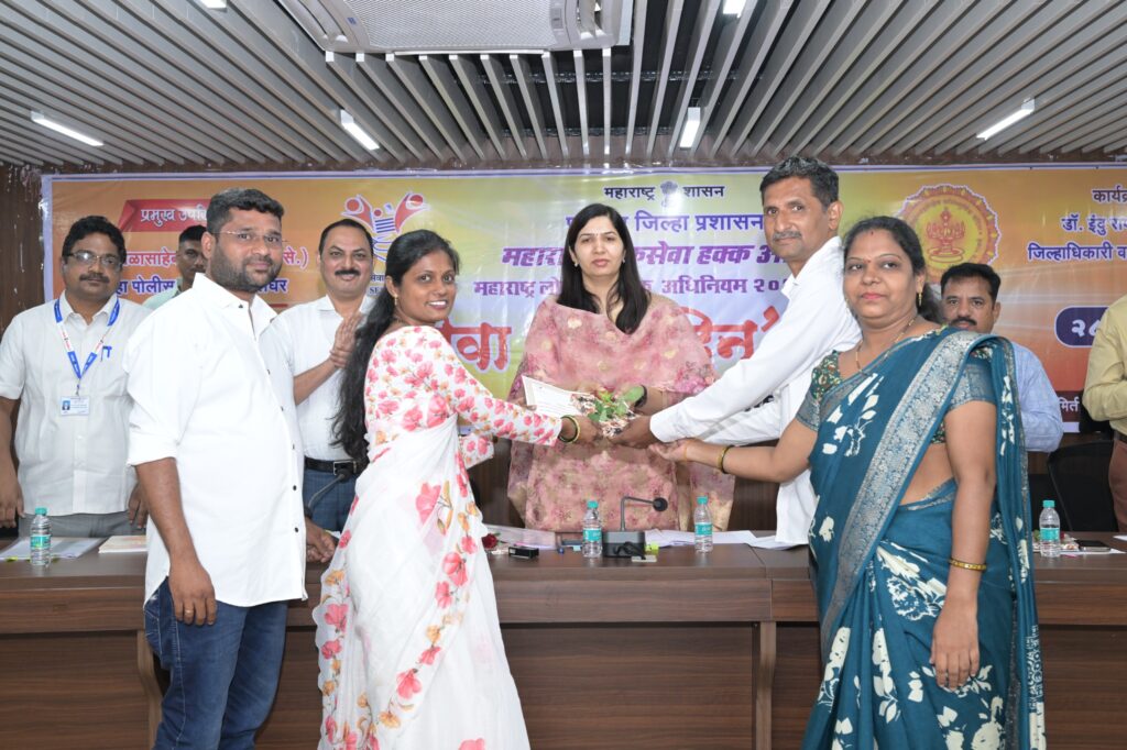 राज्यात सर्वत्र २८ एप्रिल हा दिवस “ सेवा हक्क दिन,” म्हणून साजरा केला जातो. महाराष्ट्र लोकसेवा हक्क अधिनियम २०१५ च्या अंमलबजावणीची ” दशकपूर्ती,” आणि ” प्रथम सेवा हक्क दिन,” निमित्त पालघर जिल्हाधिकारी कार्यालयातील जिल्हा नियोजन समिती सभागृह येथे जिल्हाधिकारी डॉ.इंदुराणी जाखड यांच्या अध्यक्षतेखाली “ सेवा हक्क दिन,” आज उत्साहात साजरा करण्यात आला.