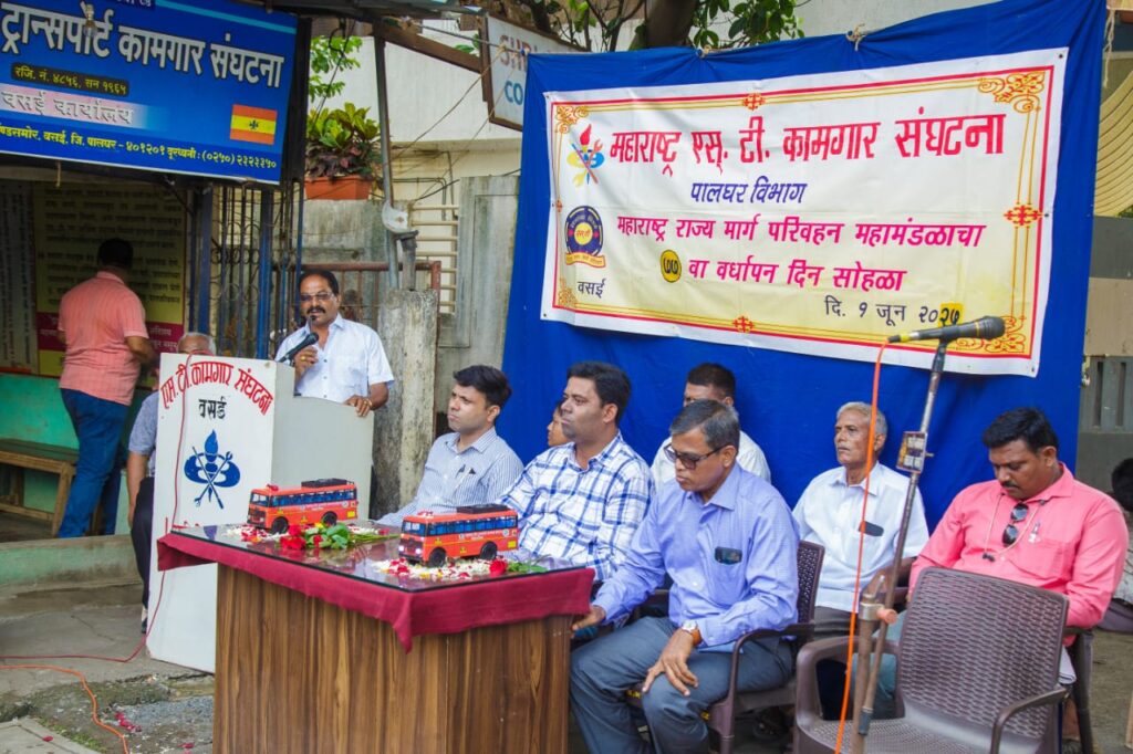 आपल्या ग्रामीण भागाची जीवनवाहिनी असलेल्या लालपरीचा काल ७७ वा वर्धापन होता.यावेळी वसई एस.टी.कामगार संघटनेने हा वर्धापनदिन वसई गाव बस आगारासमोर साजरा करण्यात आला.एस.टी.परिवहन सेवा कर्मचाऱ्याच्या प्रचंड मेहनतीने व प्रवाशांच्या सहकार्यामुळे आज नफ्यात आहे.परंतु, गेल्या काही वर्षात जुन्या बसेस बदलून नवीन बस खरेदी न करणे,कुशल कर्मचारी नियुक्ती न करणे,प्रशिक्षण शिबीरे न राबवणे,यामुळे प्रवासी एस.टी.सेवेपासून दूर जात आहेत.सध्या राज्याच्या ग्रामीण भागातील ६० लाख प्रवासी एस. टी.परिवहन सेवेचा लाभ घेत आहॆत.सदर संख्या प्रतिदिन १ कोटीवर नेण्याचे उद्दिष्ट समोर ठेवून आपण काम केले पाहिजे.एस.टी.वाचवायची असेल सेवा सुधारण्यावर कर्मचारी वर्गाने लक्ष दिले पाहिजे.असे मत एस. टी. कामगार संघटना नेते भरत पेंढारी यांनी व्यक्त केले.
