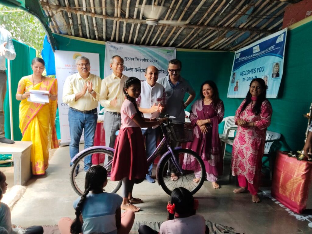 गुरूदेव सिद्धपीठ अंतर्गत कार्यरत प्रसाद चिकित्सा धर्मादाय संस्था,गणेशपुरी, रोटरी क्लब ऑफ कांदिवली वेस्ट आणि एस.ए.एस. फाउंडेशन यांच्या संयुक्त विद्यमाने काल तानसा खोऱ्यातील गरजू मुलांसाठी एक महत्त्वपूर्ण उपक्रम पार पडला.यामध्ये संस्थेतर्फे ४१ शालेय विद्यार्थ्यांना सायकलींचे वाटप करण्यात आले.याप्रसंगी रोटरी क्लब ऑफ मुंबई कांदिवली वेस्टचे अध्यक्ष देवसिंग शहाणी,यज्ञेश भट,श्रीमती दीप्ती संघवी,श्रीमती जस्मिता भट तसेच प्रसाद चिकित्साचे कार्यकारी व्यवस्थापक मिलिंद नरगुंद यांच्यासह अनेक मान्यवर उपस्थित होते.