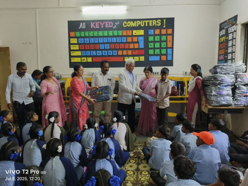 या प्रसंगी शाळेतील विद्यार्थ्यांना स्कूल बॅगचे वाटप करण्यात आले.तसेच,शाळा प्रवेश उत्सव आणि कैलासवासी मोहिनीराज जोशी ( माजी मुख्याध्यापक, गोखले एज्युकेशन सोसायटी, नाशिक ) यांच्या स्मृतिप्रीत्यर्थ विद्यार्थ्यांसाठी लेझीम संचाचे वाटप करण्यात आले.या उपक्रमात तुलसी स्टील, सहकार नगर,पुणे यांच्याकडून पहिली ते तिसरीच्या विद्यार्थ्यांसाठी चटईचे वाटप करण्यात आले.त्याचप्रमाणे, पद्माकर भिसे यांनीही उपस्थित राहून विद्यार्थ्यांना खाऊ वाटप केले.कार्यक्रमावेळी सुलभा जोशी यांनी विद्यार्थ्यांना शिक्षणाचे महत्त्व समजावून सांगितले व नियमित शाळेत येण्याची प्रेरणा दिली.त्यांनी केलेल्या मार्गदर्शनामुळे विद्यार्थ्यांमध्ये उत्साहाचे वातावरण तयार झाले. मिळालेल्या वस्तूंमुळे विद्यार्थ्यांच्या चेहऱ्यावर समाधान आणि आनंद ओसंडून वाहताना दिसत होता.