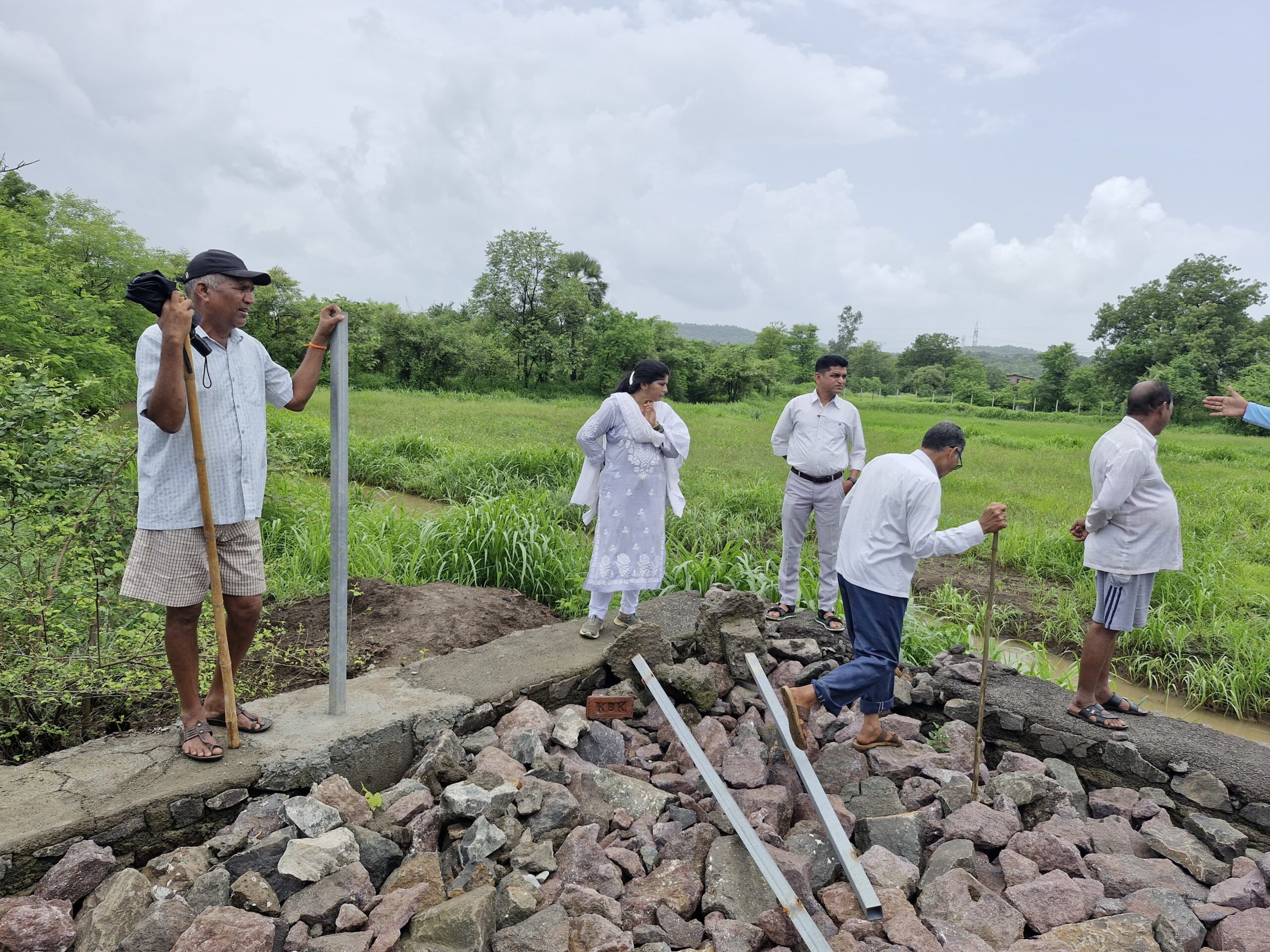 नैसर्गिक नाल्यात संरक्षक भिंत बांधल्यानमुळे भातशेतीचे नुकसान