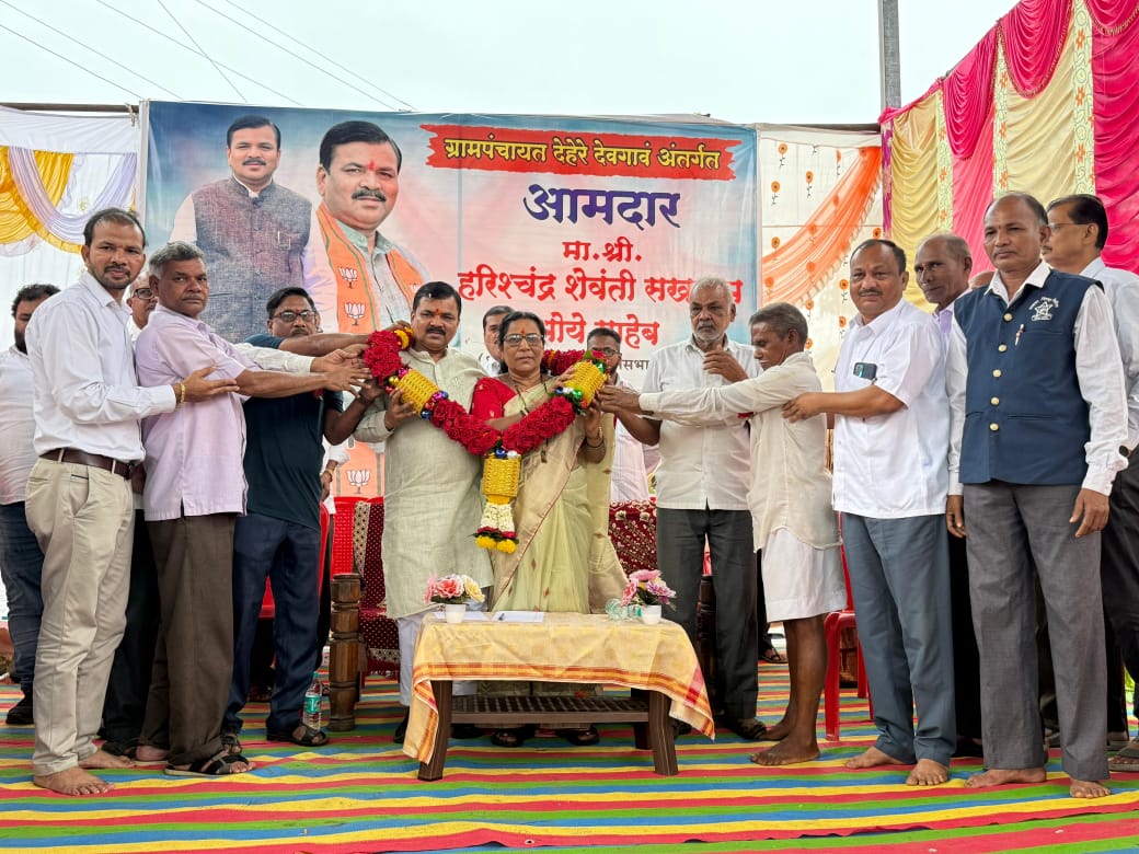 ग्रुप ग्रामपंचायत देहरे-देवगाव यांच्यातर्फे आज देहरे विक्रमगड विधानसभा आमदार हरिश्चंद्र शेवंती सखाराम यांचा नागरी सत्कार करण्यात आला.पारंपरिक वाद्य,फुलांची उधळण आणि जल्लोषात आमदारांचे त्यांच्या मूळ गावी भव्य स्वागत करण्यात आले.