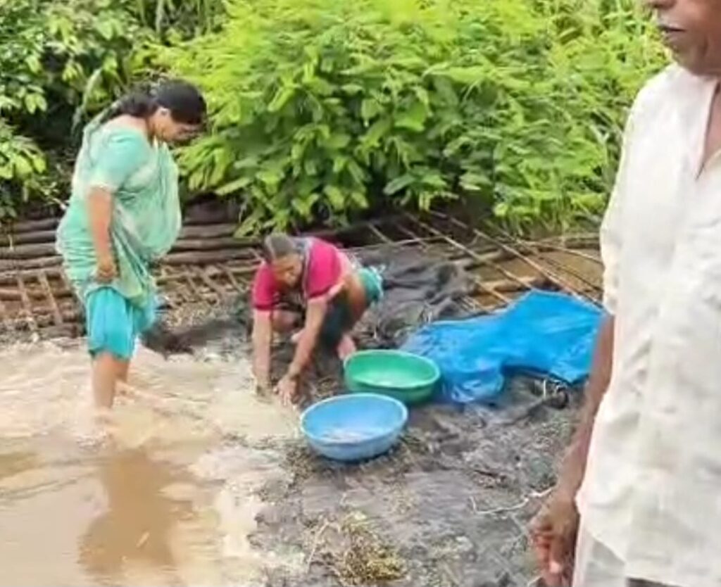 पालघर जिल्ह्यात हवामान खात्याने १३ ते १८ सप्टें. या दरम्यान पावसाचा रेड अलर्ट जाहीर केला आहे.येथील नदी- नाले,ओहोळ तुडूंब भरून वाहत आहेत.तालुक्यातील ग्रामीण भागात छोट्या मोठ्या ओहोळ – नाले,रस्त्यावरील मोरी शेजारी,शेतातील बांधावर ” किव,” करून शेतकरी सध्या मासेमारी करत आहेत.या मासेमारीमुळे काही दिवस शेतकऱ्यांच्या उत्पन्नात भर पडत असतो.