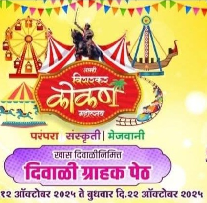 बहुजन विकास आघाडी,श्रीकृष्ण जन्मोत्सव मंडळ यांच्यातर्फे आर्टिवल फाउंडेशन यांच्या सहकार्याने रवि.१२ ते बुध.२२ ऑक्टों. २०२५ या कालावधीमध्ये ” आम्ही विरारकर,” कोकण महोत्सव व खास दीपावलीनिमित्त दिवाळी बाजारपेठेचे मनवेलपाडा तलाव,विरार पूर्व येथे आयोजन करण्यात आले आहे.