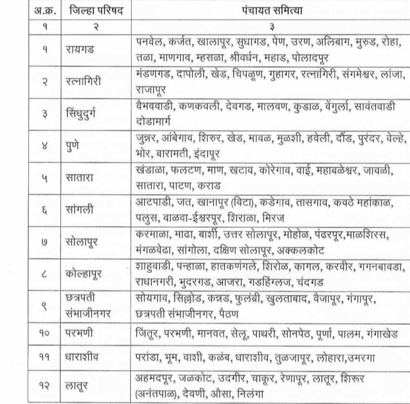 राज्यातील १२ जिल्हा परिषदा व पंचायत समित्यांच्या निवडणुका येत्या ७ फेब्रु. रोजी होत आहेत.जिल्हा परिषद व पंचायत समित्यांच्या निवडणुका दोन टप्यात घेण्याचा निर्णय आयोगाने घेतल्यामुळे पहिल्या टप्यातील निवडणुका या आठवड्यात होत आहेत. रायगड, रत्नागिरी, सिंधुदुर्ग, पुणे, सातारा, सांगली सोलापूर, कोल्हापूर, छ.