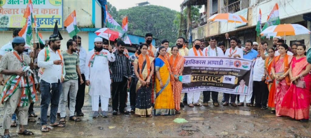 असंवेदनशील, मुके,बहिरे,महिलांवरील होणारे अत्याचार रोखू न शकणारे आणि गुन्हेगारांना संरक्षण देणारे महाराष्ट्राच्या महायुती सरकार विरोधात महाविकास आघाडीतील काँग्रेस,राष्ट्रवादी काँग्रेस ( शरद पवार ) आणि शिवसेना ( उबाठा ) या घटक पक्षाच्या पदाधिकाऱ्यांनी आज आंदोलन केले.हे आंदोलन महाराष्ट्र प्रदेश काँग्रेस कमिटीच्या पर्यावरण विभागाचे प्रदेशप्रमुख समीर सुभाष वर्तक यांच्या प्रमुख उपस्थितीत पेल्हार हायवेवर काँग्रेस कार्यालयासमोर करण्यात आले.